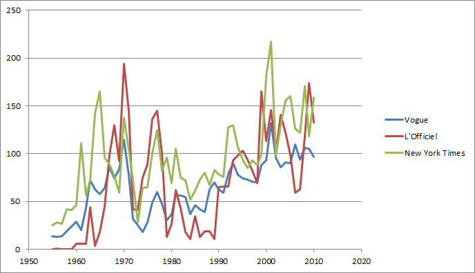 (2) I also want to return to something that I began two years ago and then stopped to focus on the numbers – an object-based look at some of the major boot styles. I’ve been quietly acquiring materials on Ebay and Etsy (including the awesome pair of late sixties boots illustrated above), so there’s enough stuff for a few posts over the spring and summer.